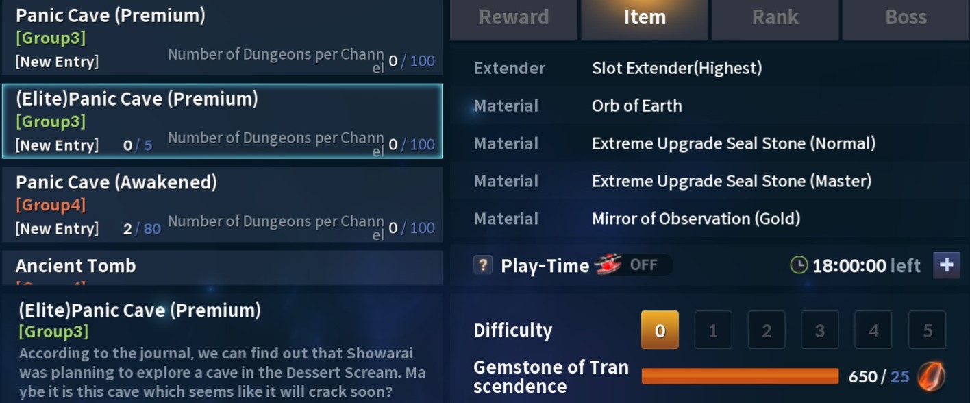 • Orb of Earth = (ELITE) Panic Cave (PREMIUM)